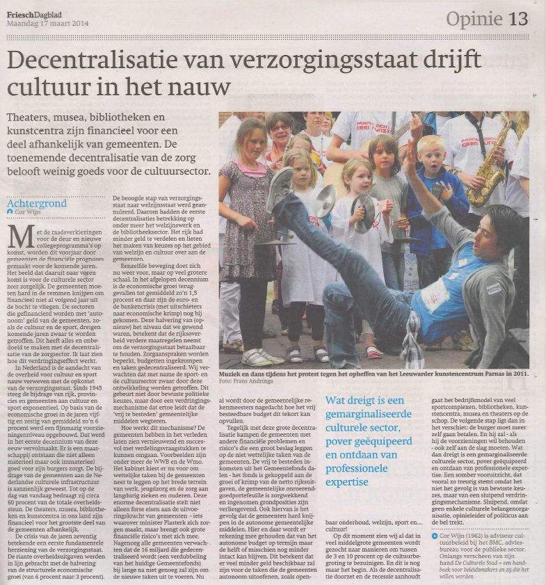 In de aanloop naar de gemeenteraadsverkiezingen 2022 besteedde het opnline platform Cultureon tien weken lang aandacht aan de diverse aspecten van het lokale cultuurbeleid. Het doel van deze ‘gemeente-specials’ was om de deelnemers aan de verkiezingsstrijd te ‘laden’ met informatie. Nu de campagnes achter de rug zijn, vonden we het de moeite waard om de specials bijeen te brengen in één digitale publicatie. In gebundelde vorm zijn de bijdragen namelijk zeer geschikt om te dienen als inwerkdossier voor nieuwe raadsleden en wethouders. Met de ‘Cultureon Gemeentegids Cultuurbeleid 2022’ hebben zij alle relevante informatie over het brede terrein van kunst, cultuur en erfgoed bij de hand. Ook voor (de vele) nieuwe cultuurambtenaren is deze gids nuttig, al is het maar omdat hij op ieder deelterrein van de cultuur aandacht besteedt aan de allerlaatste ontwikkelingen.